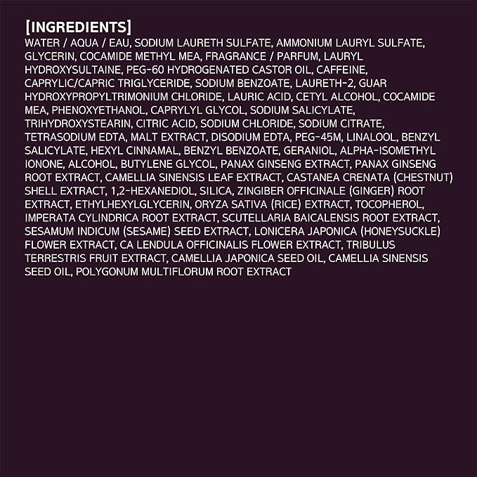- PROVIDING NOURISHMENT TO THE SCALP - A specialized technology to combine Ginseng extract from whole ginseng(root, stem, leaf, fruit) harvested in June when its active ingredients reach their peak. The leaf and stem(above the ground) have over seven times higher key ingredients providing nourishment to the scalp and hair than the roots(underground)