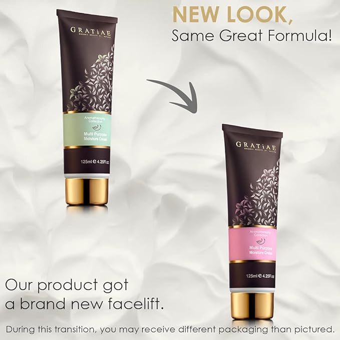 Gratiae Organic Moisture Cream Lavender Aromatheraphy Collection Multi Purpose Perfect Skin, Anti Aging treatment for face and body, light, non sticky 4.25 Oz