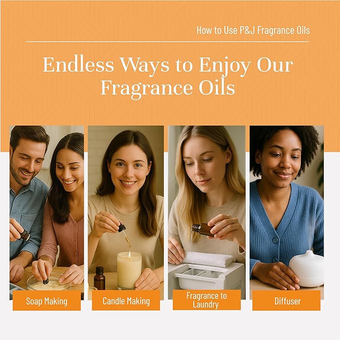 - Premium Grade: P&J fragrances oils are highly concentrated with a strong scent. With more than 30 years in the industry, these enhanced formulations were developed by our IFRA certified master perfumers. Our oils are safe and ideal for every home.