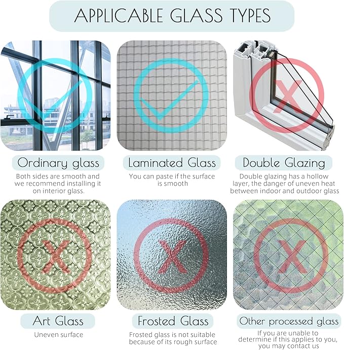 - STATIC CLING & WIDELY USED: Water is the most important installation tool. The more water you spray, the easier it will be to install. Our static cling window film is designed to be adhesive-free, with no chemical releases. You can easily install and remove without leaving any residue. Suitable for smooth and clean glass, such as Residential, stores, living rooms, offices, etc. For more information on how to install glass privacy film, you can refer to our video.