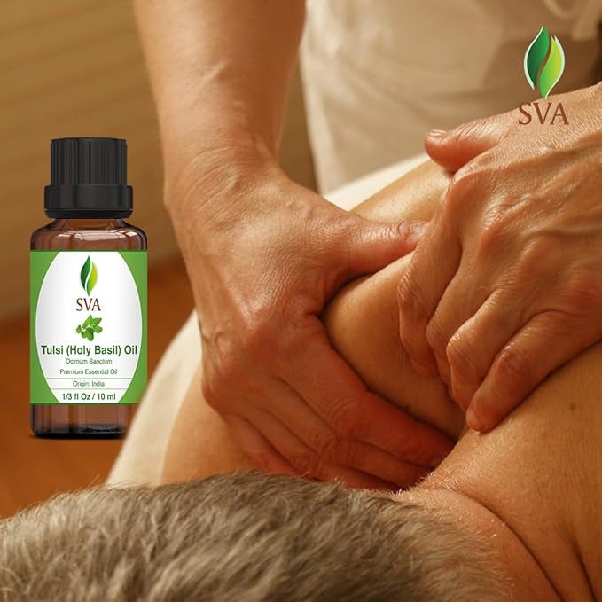 - Premium Quality Holy Tulsi Essential Oil: SVA Holy Tulsi Essential Oil 1/3 oz is obtained by steam distillation of Ocimum sanctum (Holy Basil) herb. Our Holy Tulsi oil is free of preservatives. It is not tested on animals. We care for you
