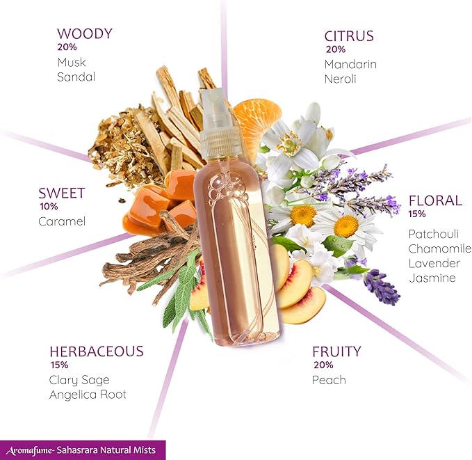 - PACKAGE CONTENTS: 100ml bottle or 3.38 fl oz of Aromafume 7 Chakra - Sahasrara- Crown- Grounding Natural Mist