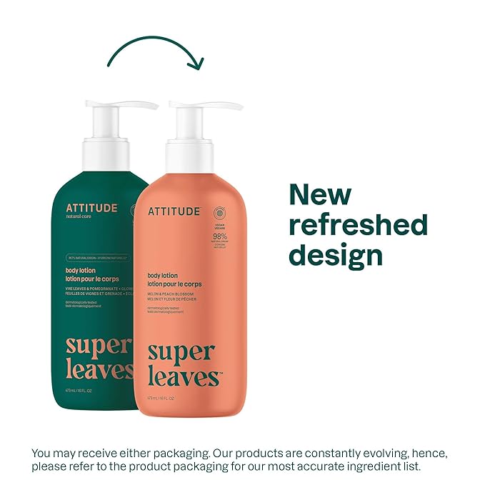 ATTITUDE Body Lotion, EWG Verified Moisturizer, Vegan Skin Care Products, Non-Greasy, Hydrating for Dry Skin, Cruelty Free, Glowing, Melon & Peach Blossom Scent, 16 Fl Oz