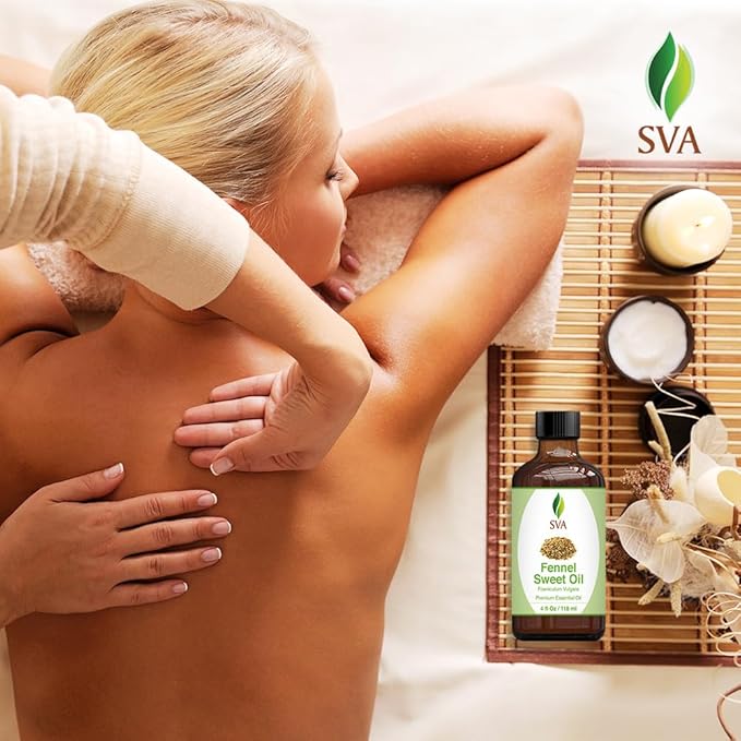 - Premium Quality Sweet Fennel Essential Oil: SVA Sweet Fennel Oil 4oz is an essential oil and is obtained by steam distillation of Foeniculum vulgare seeds. Our Sweet Fennel oil is free of preservatives and comes with a dropper for easy application. It is not tested on Animals. We care for you