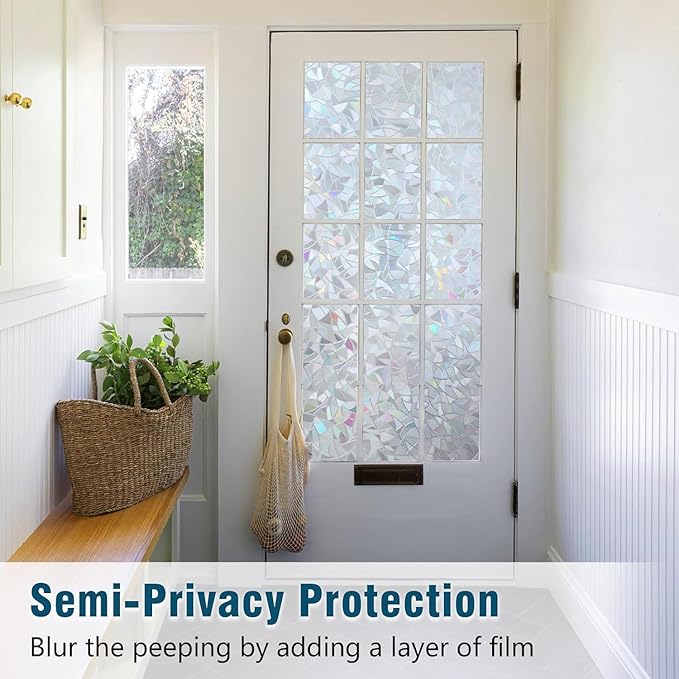- Semi-Privacy: Our privacy film for glass windows blurs the peeping eyes by adding a layer of window treatment, making the outsider is not easily seeing inside to provide partial privacy protection, so it is not suitable for high-privacy areas. Note: the unfolded film is transparent grayish silver