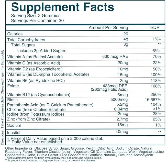 - PACKED WITH VITAMINS - Feel beautiful and support your wellness with the combined mix of Biotin and different vitamins - such as Vitamin A, C, E, B5, B6, B9, - that can help feed your body the vital nutrients your hair, skin and nails need.