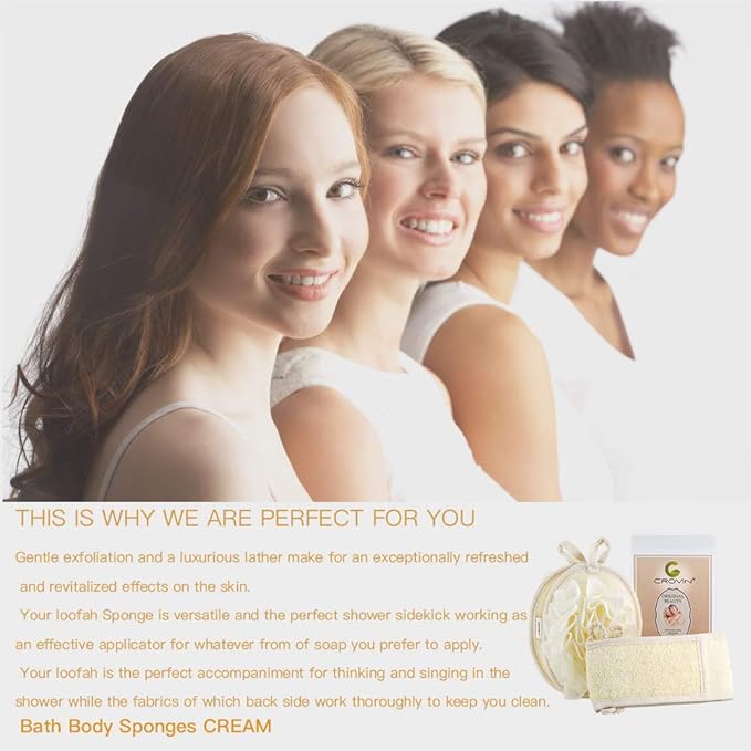 Mesh Pouf Body Sponge Set - Redesign Bath Loofahs Shower Puffs 2 Pack & Exfoliating Natural Loofah Back Scrubber. How to - Great Gift for A Glowing Skin & Healthy Body