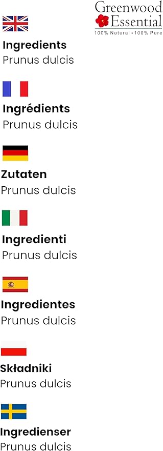 Greenwood Essential Pure Almond Oil (Prunus dulcis) Cold Pressed (Pack of Two) 100ml X 2 (6.76 oz)