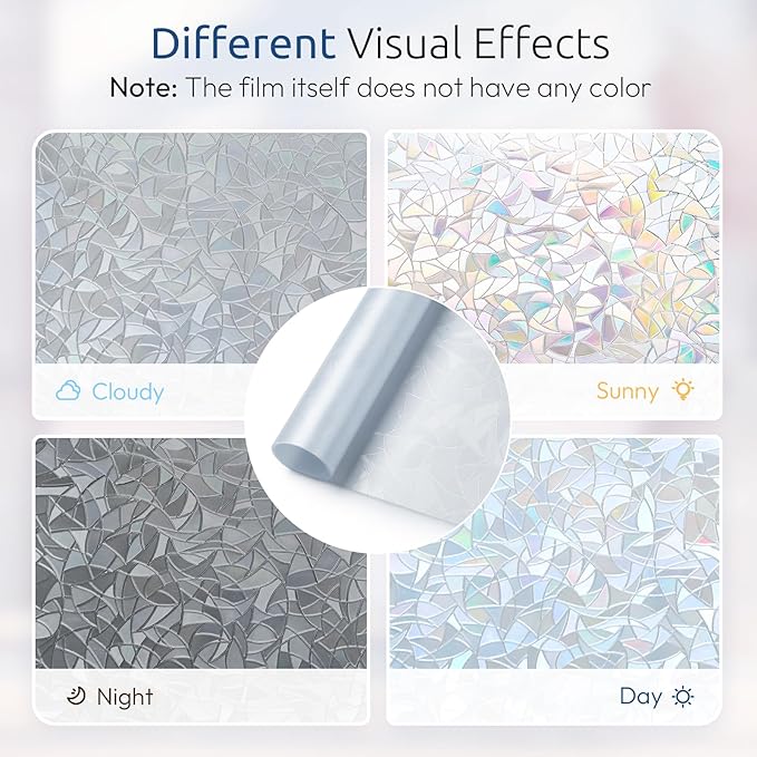 - Elegant Rainbow Design: The grayish silver privacy window film transforms the glass into artwork, reflecting a subtle rainbow effect over the floor when hits by sunlight. The light-colored window decal blends well with various furniture styles, creating an organized and stylish furnishing decor