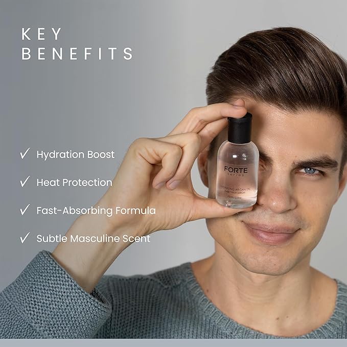 - HYDRATING HAIR SERUM FOR MEN - The Hydrating Argan Oil by Forte Series is a hair serum designed for daily use. Argan oil has been used for centuries to promote shiny, silky hair. If you regularly style your hair using heat styling tools like straightening irons, curling irons, or blow-dryers, this argan oil for hair works as a pre-styler, priming your hair for heat exposure.