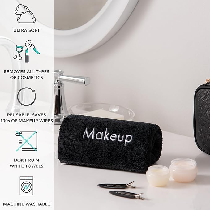 - DON'T RUIN YOUR WHITE TOWELS: Do not ruin your white towels with makeup stains - use our microfiber makeup eraser cloth set that will won't look shabby or dirty. The charming "Makeup" embroidery sets this makeup remover cloth apart from other bathroom linens.