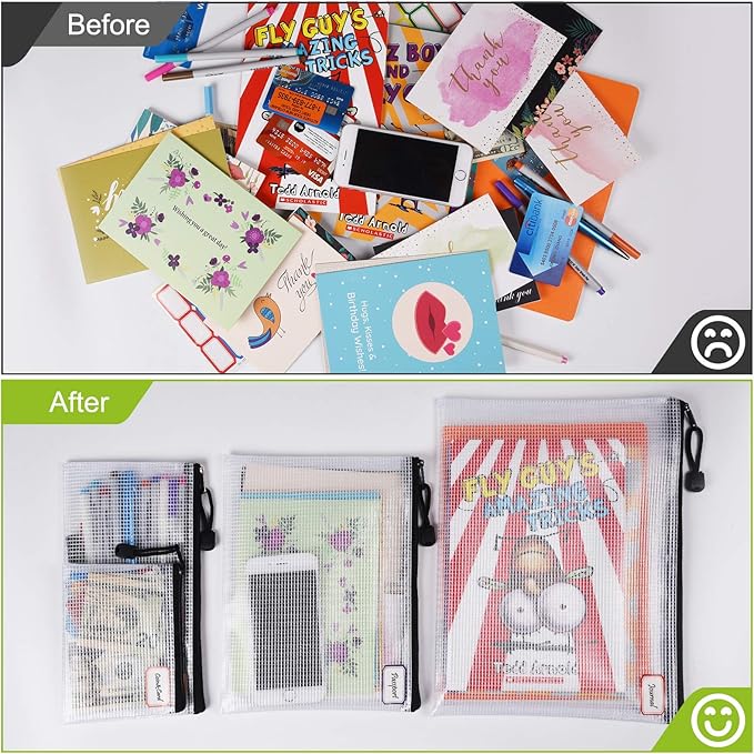 - 【Product Size】Size of the high quality mesh document bags with Zipper are A3,A4,A5,B5,A6,B8, each size 2 pcs. Which can be used to store some office supplies, like stationery, receipts, invoices etc., also can be used for home daily storage, like the jewelry, make up brush and so on.