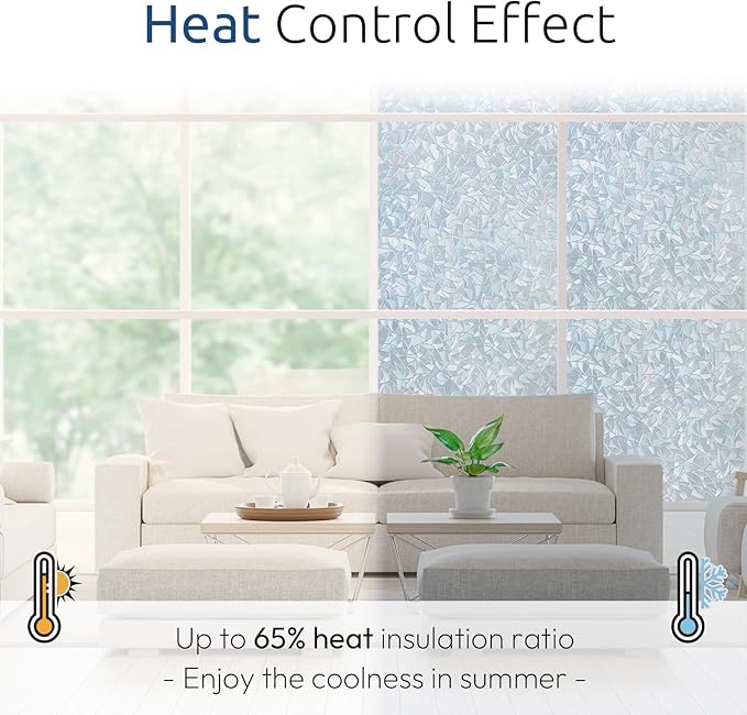 - UV Protection & Heat Control: By blocking out 84% UVA and 99% UVB rays, the one way window covering effectively protects skin and furniture from aging caused by long-time sun exposure. The rainbow window film helps maintain a comfortable indoor temperature by reflecting solar heat