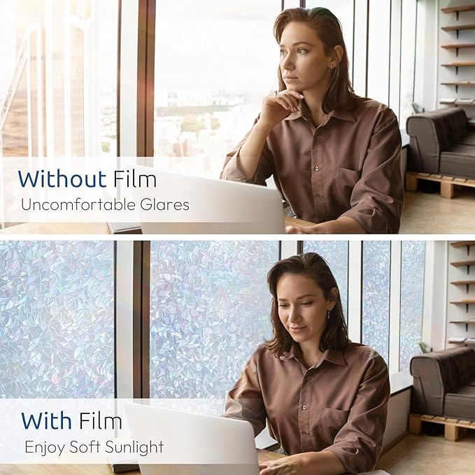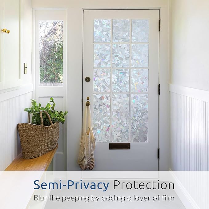 - Semi-Privacy: Our privacy film for glass windows blurs the peeping eyes by adding a layer of window treatment, making the outsider is not easily seeing inside to provide partial privacy protection, so it is not suitable for high-privacy areas. Note: the unfolded film is transparent grayish silver