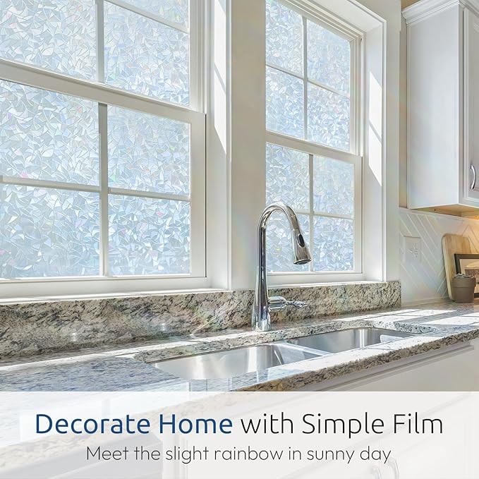 - Elegant Rainbow Design: The grayish silver privacy window film transforms the glass into artwork, reflecting a subtle rainbow effect over the floor when hits by sunlight. The light-colored window decal blends well with various furniture styles, creating an organized and stylish furnishing decor