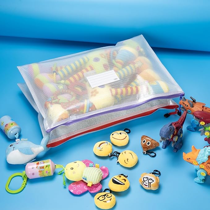 - 12 Pcs Mesh zipper bags with label pocket, A4 size 13.4 x 9.4 inch. Widely used in Office Home Hospital and Travel: Great zipper file bags, board game storage bags, pencils pouches, puzzles bags, cross stitch projects bags or keeping various craft projects organized. These mesh bags could meet your needs in all ways.NOTE: Manufacturer Minimum Age: Over 3 Years Old.