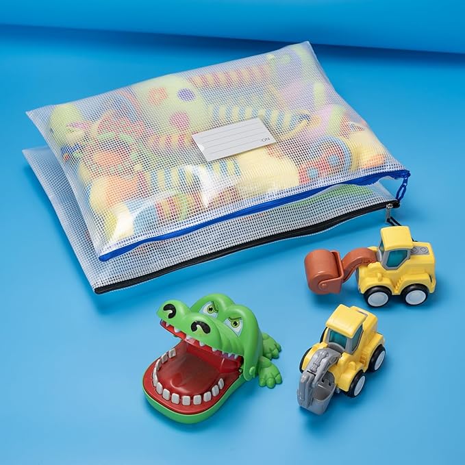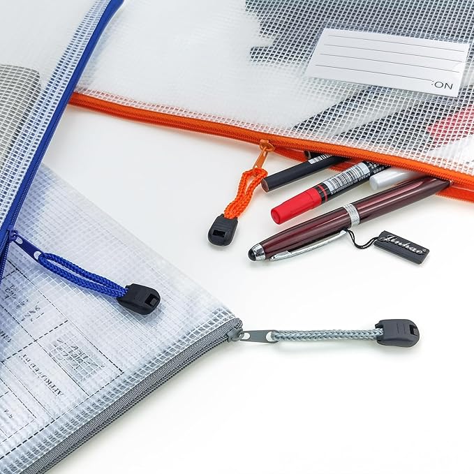 - 12Pcs Mesh zipper bags with label pocket, B4 size 15x11 inch. Widely used in Office Home Hospital and Travel. Great zipper file bags, board game storage bags, pencils pouches, puzzles bags, cross stitch projects bags or keeping various craft projects organized. These mesh bags could meet your needs in all ways