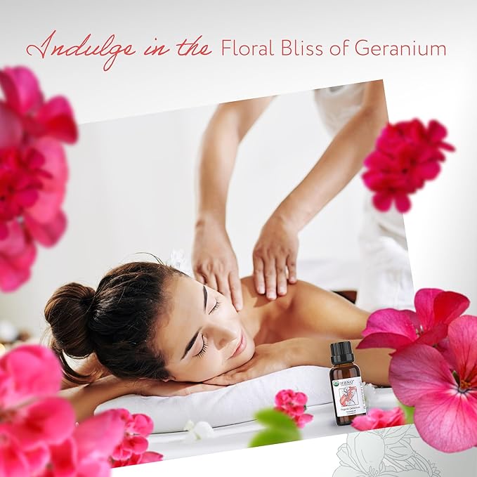 - Step into a Floral Oasis with Organic Geranium Essential Oil: Geranium oil is known for its delightful, sweet floral aroma, reminiscent of roses, making it a popular choice in aromatherapy.