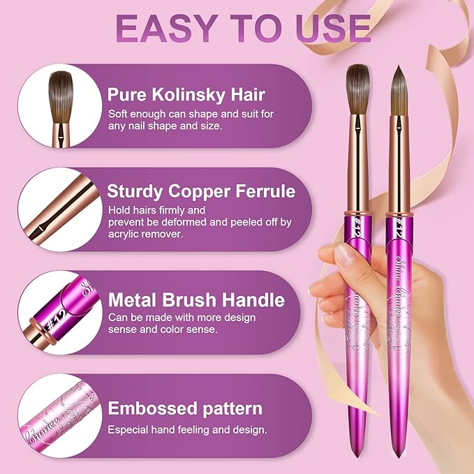 - 🌷【Best Service】: All of our products are under strict quality control, we are always responsible for our are nail brushes, Up to ONE YEAR replacement/refund service. Please feel free to contact us if you experience any problems with our kolinsky acrylic brush.