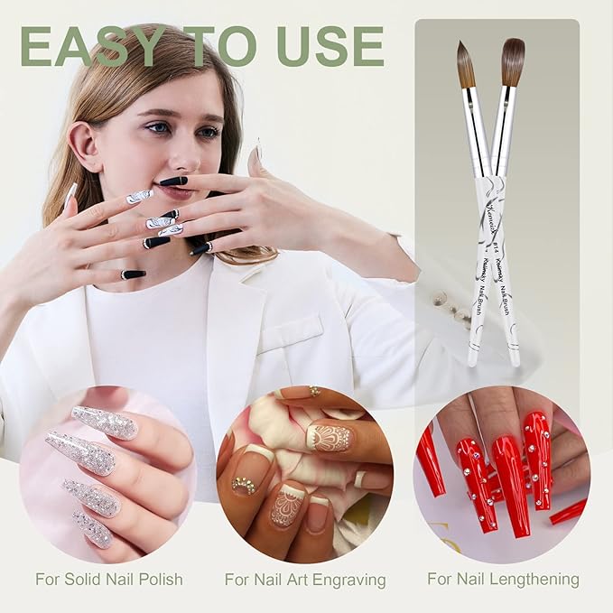 - 【Suitable for All Nail Art】The acrylic nail brush for acrylic nail extension or carving, lightweight and comfortable, easy holding to draw, smooth application. A perfect nail tool for nail pros or nail beginners, great for professional salons and home DIY nail art.
