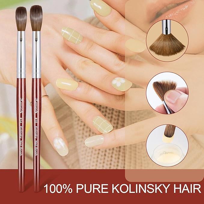 - 【100% Kolinsky Acrylic Brush Bristle】The nail brush is made of high quality Kolinsky hair to ensure durability that soft enough to sculpt and shape to any nail shape and size. remarkable soft and flexible with a better powder absorption, natural and smooth, easy to paint.