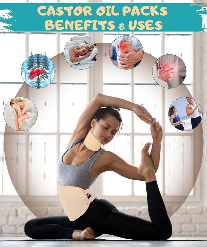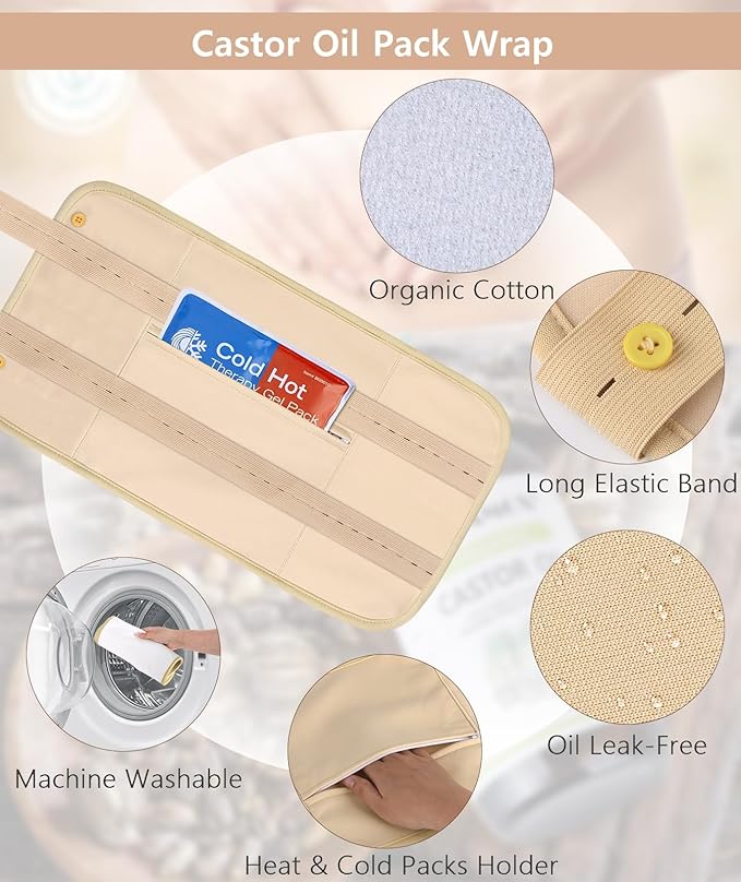 - Complete Castor Oil Pack Set – The kit includes castor oil pack wraps and a bottle of 8fl.oz (237ml) castor oil in a glass bottle. No additional accessories are needed—everything required for castor oil pack applications is included, making it ideal for daily at-home use.