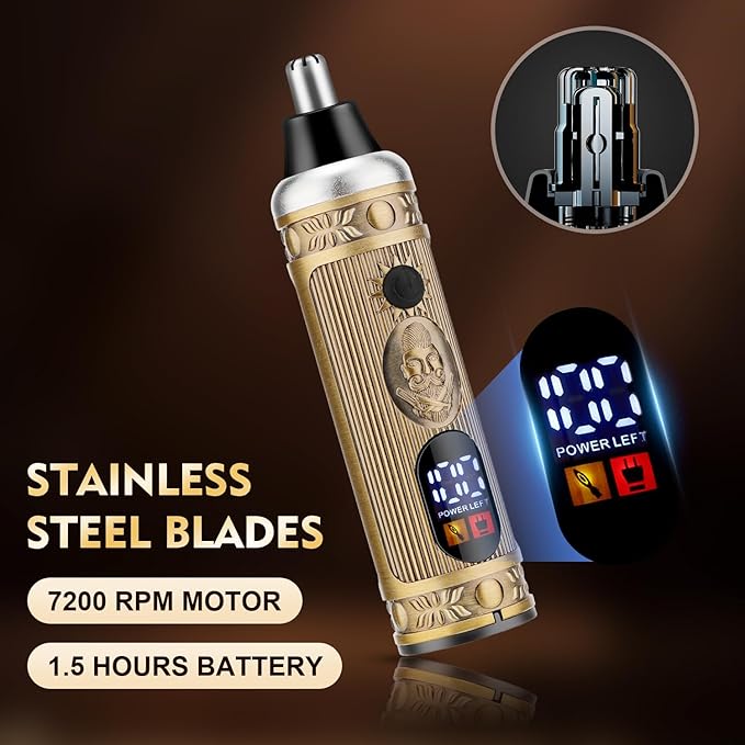 - PROFESSIONAL BARBER CLIPPERS & TRIMMER SET - Men's Trimmer Grooming Set includes barber clippers, men's nose hair trimmer, and dual blade aluminum foil razor.The T-Blade Beard Trimmer makes it easy to trim hair, beards, artistic carvings, sideburns, precision trimming, and body trimming. Ear and Nose Trimmer for precise, gentle trimming of ear and nose hairs. Electric bald aluminum foil razor for beard trimming.