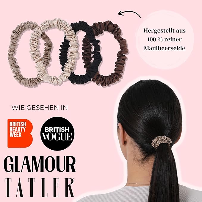 - MULTI PURPOSE - Stylish and functional, each set of Silkie skinny scrunchies comes with 4 different complimentary tones - take your pick from our Chocolate or Nudes collections. Neutral, practical colours mean they can be worn in the daytime, evening wear for a chic look, or even during exercise and at the gym. Silkie scrunchies are suitable for all hair types!