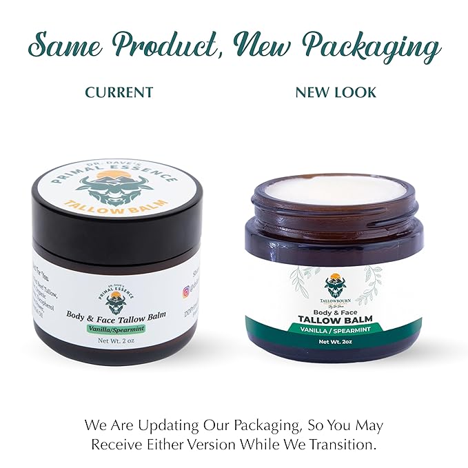 Dr. Dave's Primal Essence Grass Fed Beef Tallow Balm for Face and Body with Shea Butter, Organic Jojoba Oil, Honey, and Beeswax – Beef Tallow for Skin – Vanilla and Spearmint – 2 oz