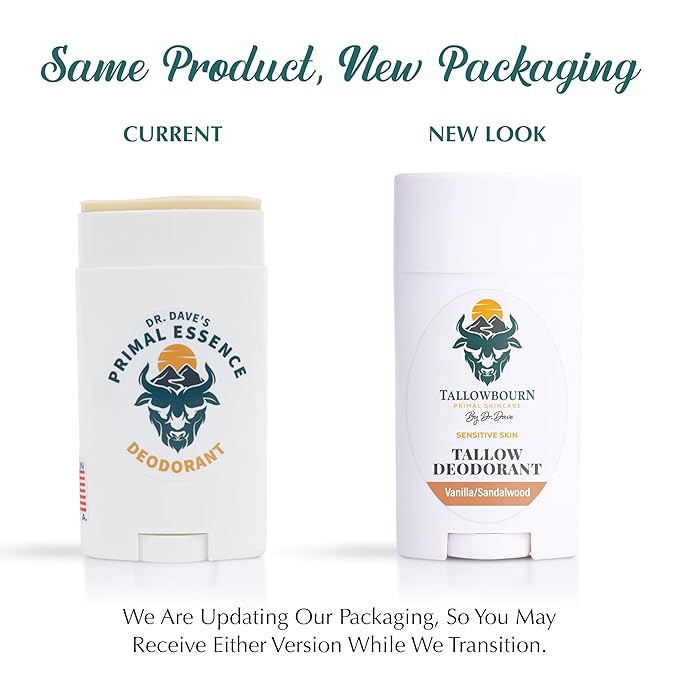 Dr. Dave's Primal Essence Tallow Deodorant - Aluminum and Baking Soda-Free - Helps Manage Body Odor and Sweat - Vanilla and Sandalwood Deodorant for Men and Women - 3 oz