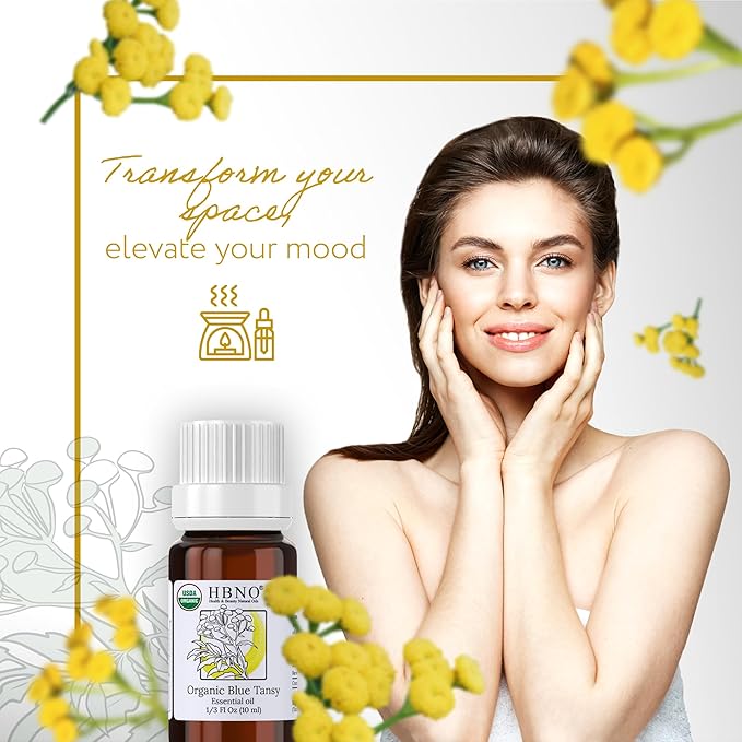 HBNO USDA Certified Organic Blue Tansy Essential Oil - 1/3 OZ (10 ml) Travel Size - Perfect for Aromatherapy, DIY, Candle Making, Soap Making, Diffusers - Blue Tansy Essential Oils