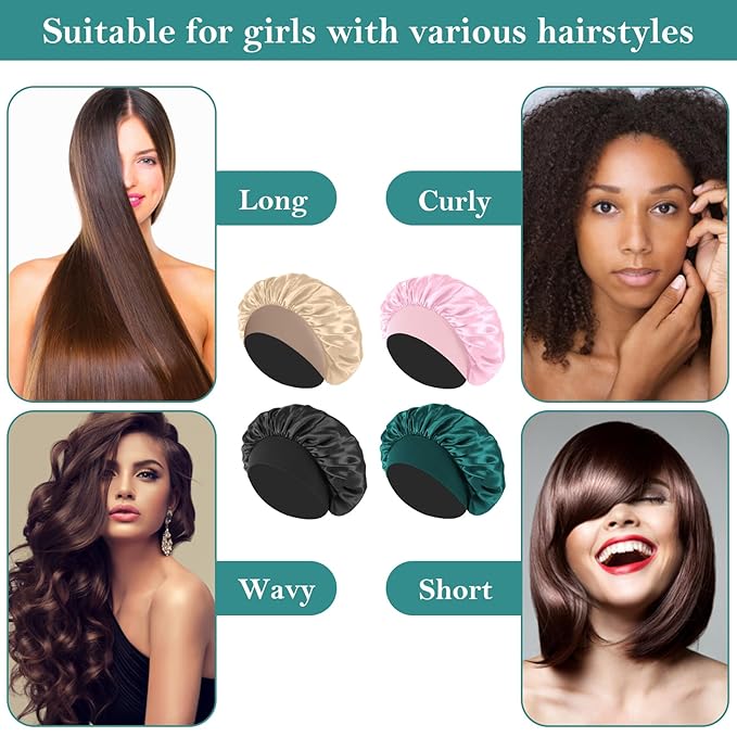 - 🌸【Satin Bonnet Classic Versatile】Silk hair wrap suitable for any place. Whether in doing housework, home office, doing yoga, doing sports, sleeping or bathing, you can wear it, to give you the convenience of daily activities. Satin sleeping cap is also versatile sleeping cap, suitable for all hair, such as natural hair, long hair, curly hair, braids, straight hair, ponytail, etc.