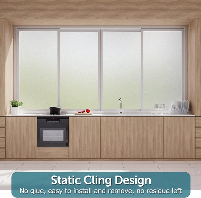 - ECONOMICAL & WIDE APPLICATION: No more heavy and troublesome curtains and blinds, simple decorative window film makes life more convenient and better. Suitable for all smooth and clean glass surfaces in office, bedroom, bathroom, living room, kitchen, balconie, cabinet, glass door, hotel, etc. Double-layered glass, frosted glass and other treated uneven glass is not applicable for window frosting film.