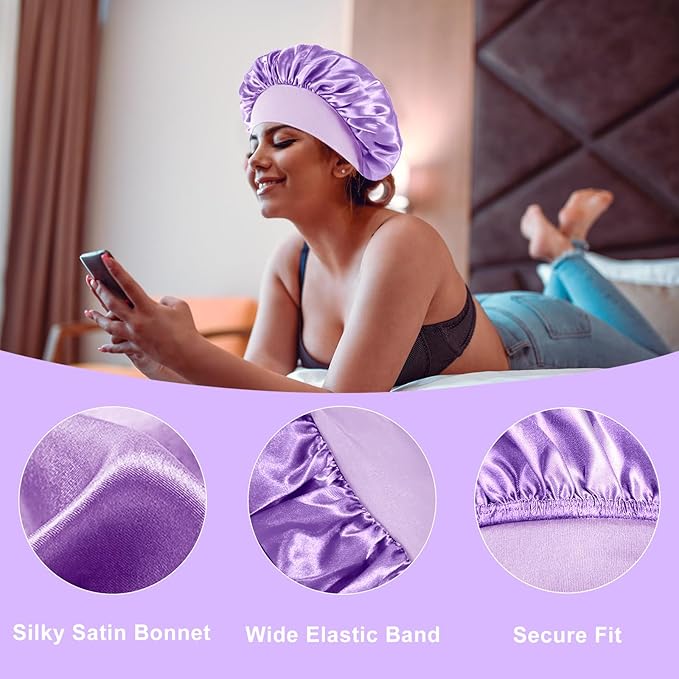 - 🌸【Satin Bonnet Classic Versatile】Sleeping cap suitable for any place. Whether in doing housework, home office, doing yoga, doing sports, sleeping or bathing, you can wear it, to give you the convenience of daily activities. Satin sleeping cap is also versatile sleeping cap, suitable for all hair, such as natural hair, long hair, curly hair, braids, straight hair, ponytail, etc.