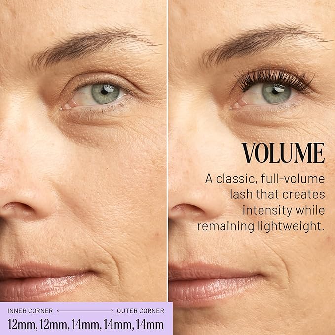 - Volume Lashes - A dense, dark, and lush lash. Volume is just that–a full-volume lash for an intense yet lightweight look. Tightly packed flare clusters define your eyes and demand notice. Available in 10, 12, 14, and 16mm to find your ideal natural fit.