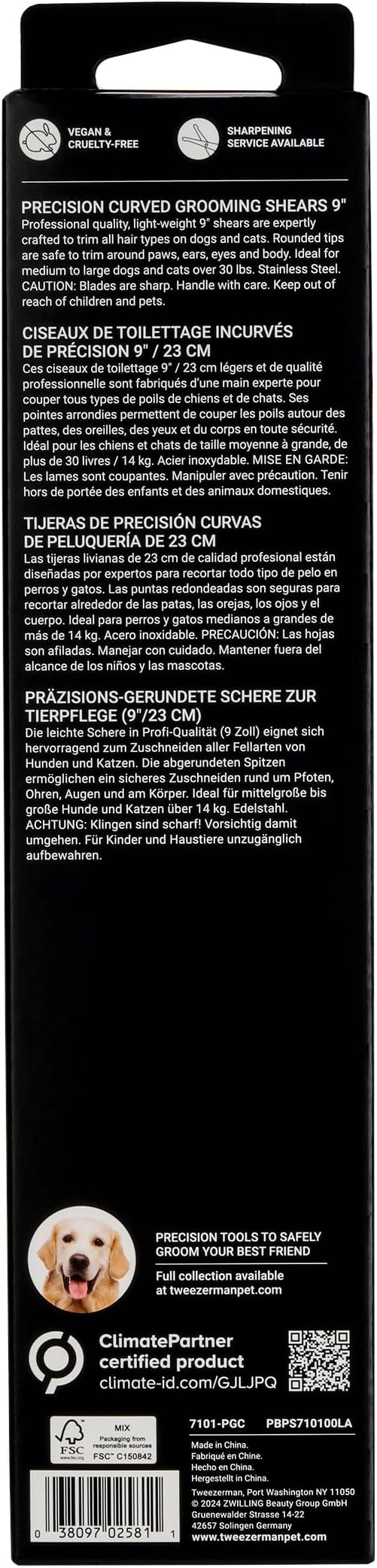 Tweezerman 9" Pet Grooming Scissors with Safety Round Tips, Professional Curved Grooming Shears for Medium to Large Dogs