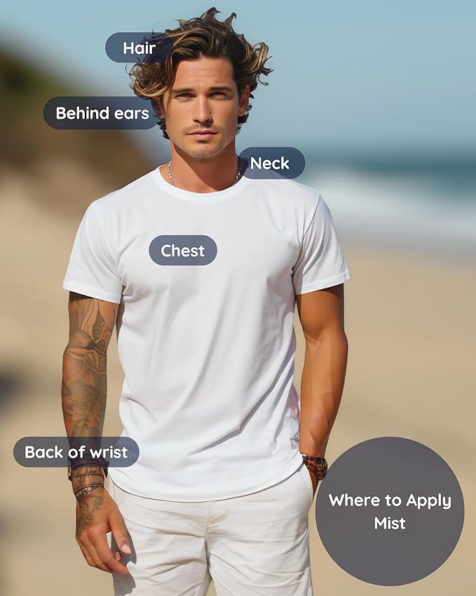 Bleu for Men Natural Hair & Body Mist Spray, Pure Essential and Fragrance Oils, Alcohol-Free, Handmade in California, 0.5Fl Oz