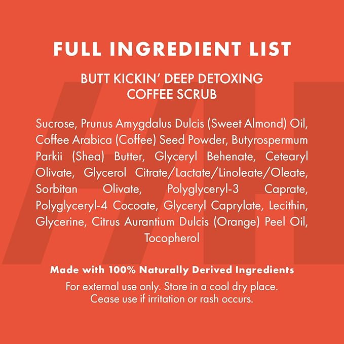 - HANDMADE HEROES BUTT KICKIN' DEEP DETOXING COFFEE SCRUB an ultra nourishing and detoxing body scrub, hand scrub and foot scrub. Tough on cellulite but kind on the skin