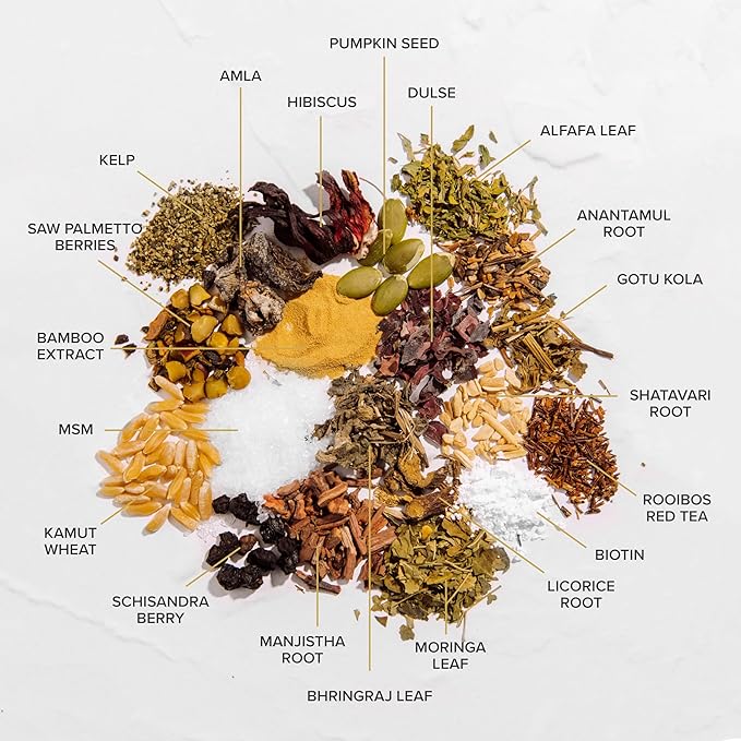 - ICONIC GROWTH DUO: Featuring the Hair + Scalp Elixir and Hair + Skin + Nails Herbal Vitamin, both products are formulated with highly researched natural ingredients sourced from around the world with proven track records for improving hair health.