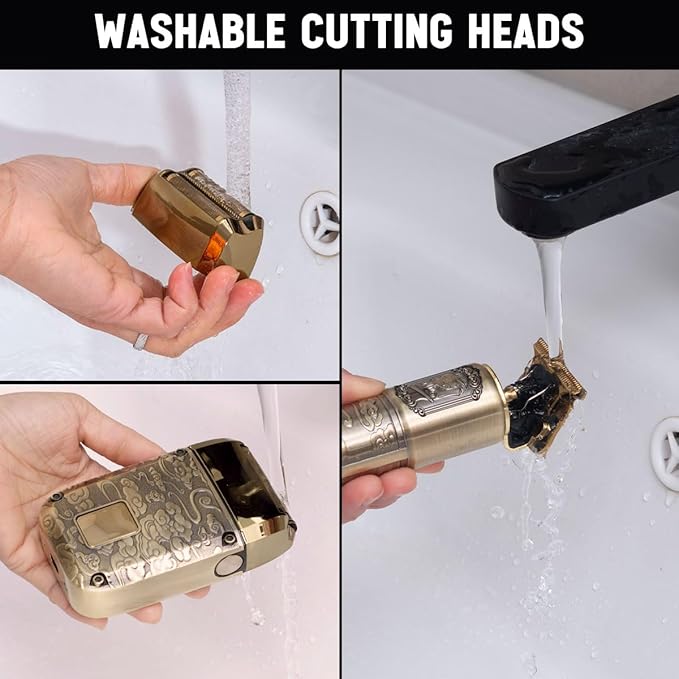 - 2 IN 1 Hair Trimmer Kit: This professional hair trimmer with foil shaver set includes a T-shaped hair clipper, an electric shaver, 4 guide combs (1/3/5/7mm), 2 USB cables and 2 cleaning brushes, giving you a satisfactory haircut and shaving experience