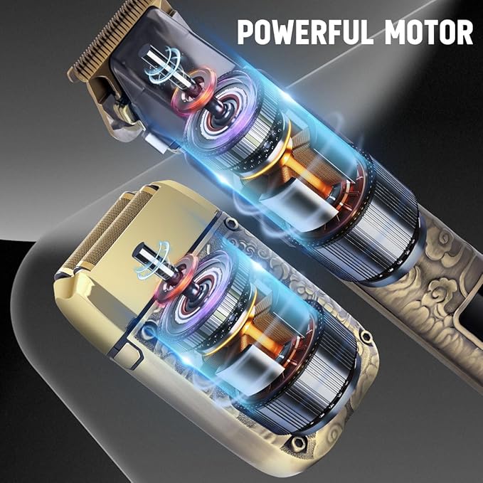 - Comfortable and Safe Cutting: This hair clipper set is equipped with T-shaped stainless steel blades and guide combs with different lengths to ensure smooth cutting of all types and lengths of hair. The blade is finely ground to keep sharp for a longer time, and the R-shaped design is also safe for children. The embossed metal shape of the fuselage is smooth and compact, and the grip is comfortable