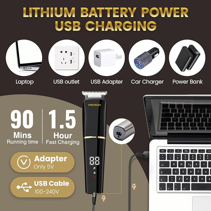 - 【LED DISPLAY, USB CHARGING& TRAVEL LOCK】- Up to about 90 minutes of shaving time by only about 90 minutes charging. The Beard trimmer is equipped with a high definition LED display for showing the amount of power left in the trimmer, which reminds you to charge.(The maximum number for battery level display on the device is 99) Travel lock (press and hold the POWER button for three seconds)