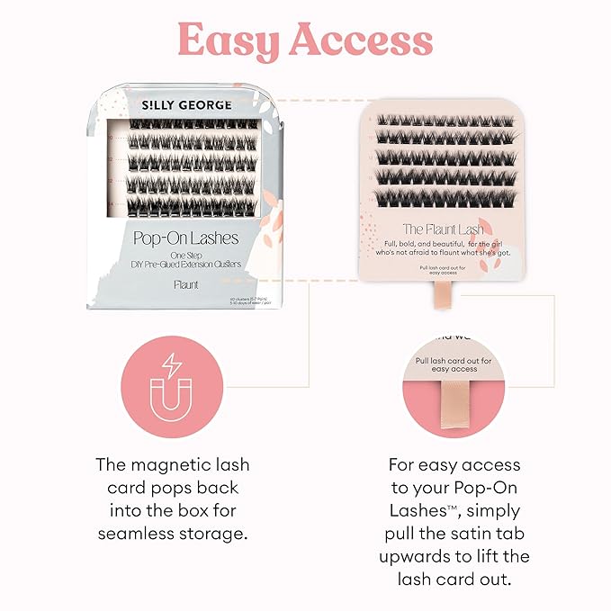 - NATURAL & EFFORTLESS POP-ON LASH CLUSTERS: Experience instant one step salon-quality lashes! Silly George Pop-On, pre-glued, handmade clusters deliver custom, weightless, and natural-looking lashes lasting 5-10 consecutive days!