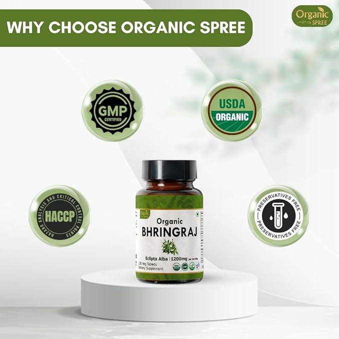 - Made with Goodness : Organic Spree Bhringraj Tablets are USDA Organic Certified, Vegetarian-friendly, and free from artificial colors, flavors, and preservatives. Enjoy the benefits of Organic BHRINGRAJ in every tablet.*