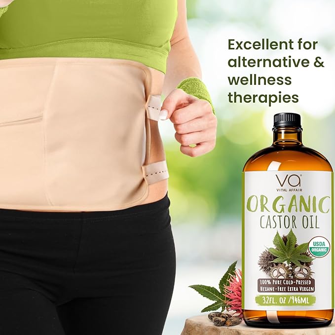 - Works Best With Organic Castor Oil Pack: Our Organic Castor Oil Cold Pressed Hexane Free works well with castor oil pack wrap to help improve circulation, reduce inflammation, and alleviate pain, aiding in detoxification, muscle tension relief, and addressing issues like constipation or menstrual discomfort.