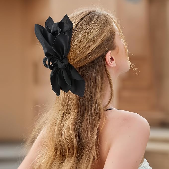 - Stylish Aesthetic:With their satin material and large bow embellishments,the black white bow hair accessories color options provide a trendy and fashionable look,our bow claw clips add a touch of elegance and charm to any hairstyle
