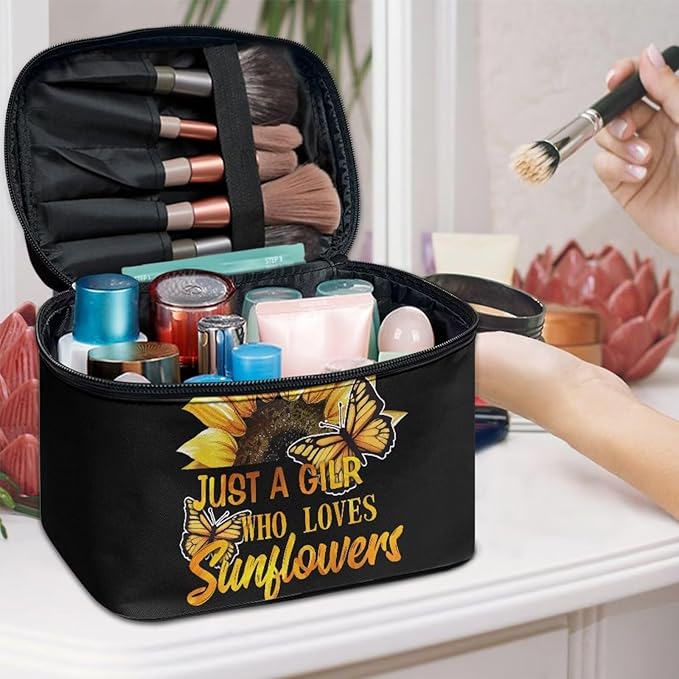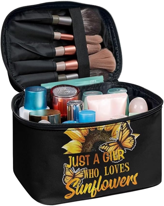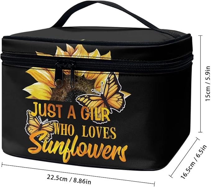 JoyLamoria Inspiring Sunflower Butterfly Cosmetic Bag Travel Women Girls Makeup Bag Wallet Coin Purse