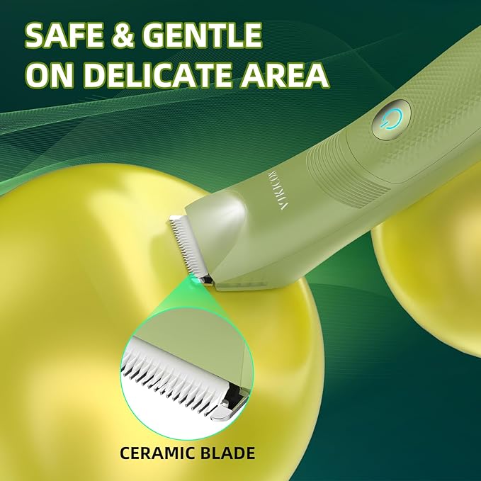 - Enjoy smooth, rust-resistant trimming with VIKICON's stainless steel and ceramic blades. Our innovative R-shaped blade design makes it a top choice for a ball trimmer for men with no nick experience - no nicks, no cuts, no pulling. Paired with a built-in LED light, the VIKICON HT-871 groin trimmer for men ensures precision and comfort, even in delicate spots. Ideal as a pubic hair trimmer for men, it offers the safest way to maintain your hygiene.