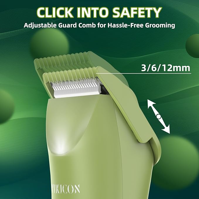 - Adjustable Hair Lengths Made Simple - VIKICON body groomer equipped with an adjustable guard offers 3 trimming lengths (3/6/12mm) to suit your preferences. Attach the guard, slide to adjust, and trim confidently. Stretch your skin and go slowly for smooth, irritation-free results. Maintain a clean look with our VIKICON HT-871 EasyTrim Series electric body hair trimmer!