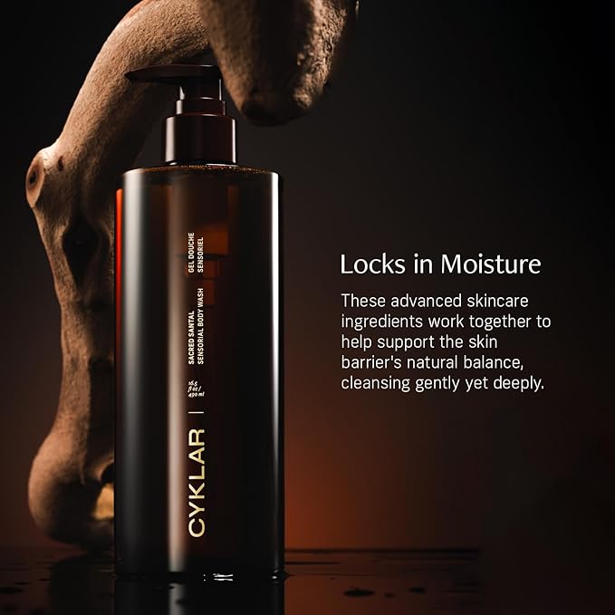 CYKLAR Sensorial Body Wash. Sacred Santal Hydrating Cleanser with Moisture Locking Multi-Oil Complex, Sodium PCA and Glycerin. Nourishing Shower Gel for Women and Men, 16.5 Fl Oz Luxury Bodywash